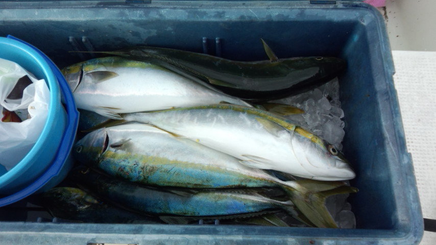 ブリのヒットを盛り返しましたが、釣ってもクラーに入りきれず