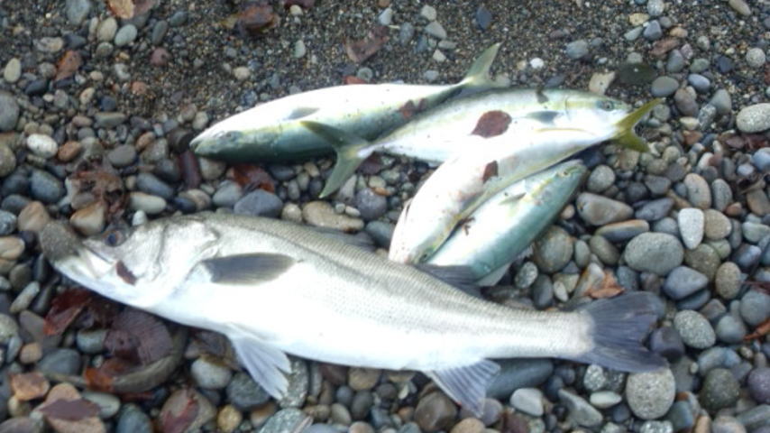 ちょっとルアーを投げるとイナダやスズキが釣れました。