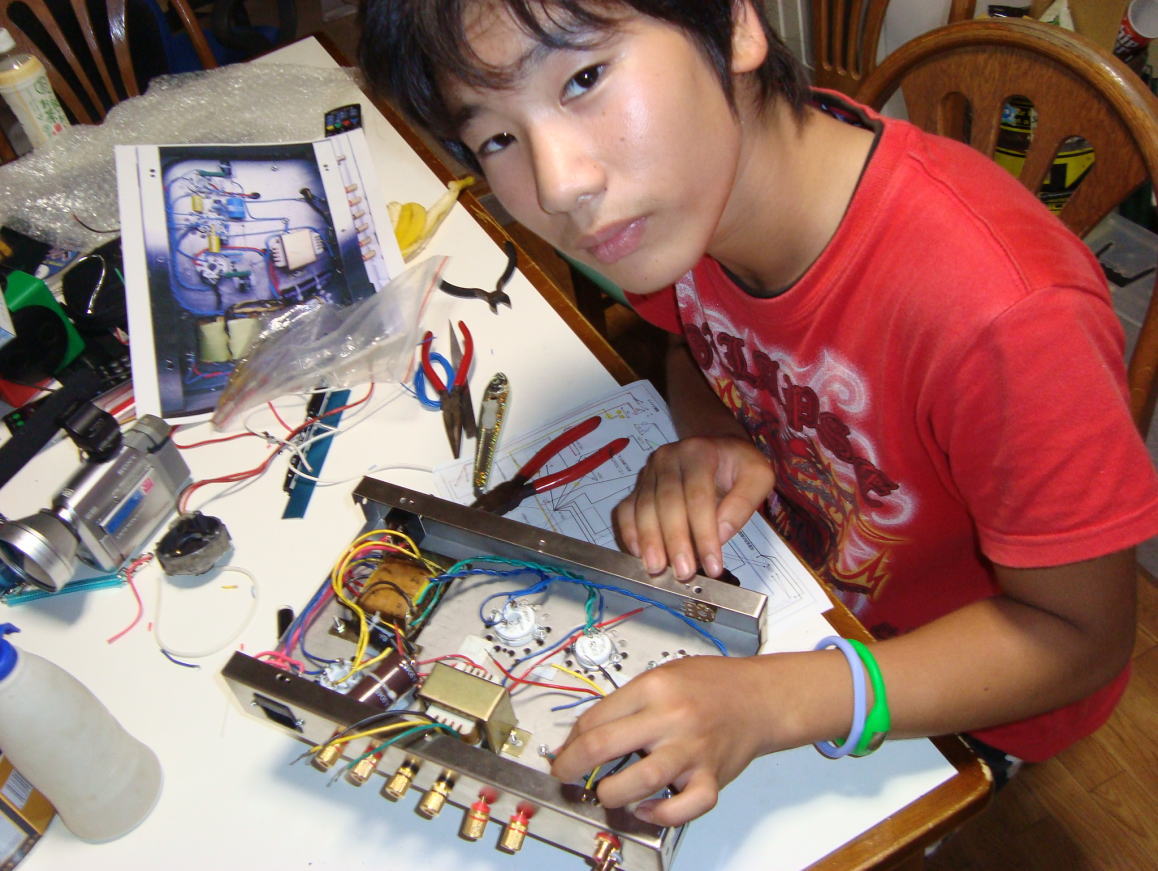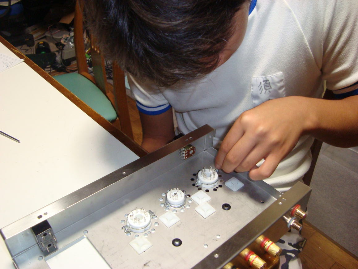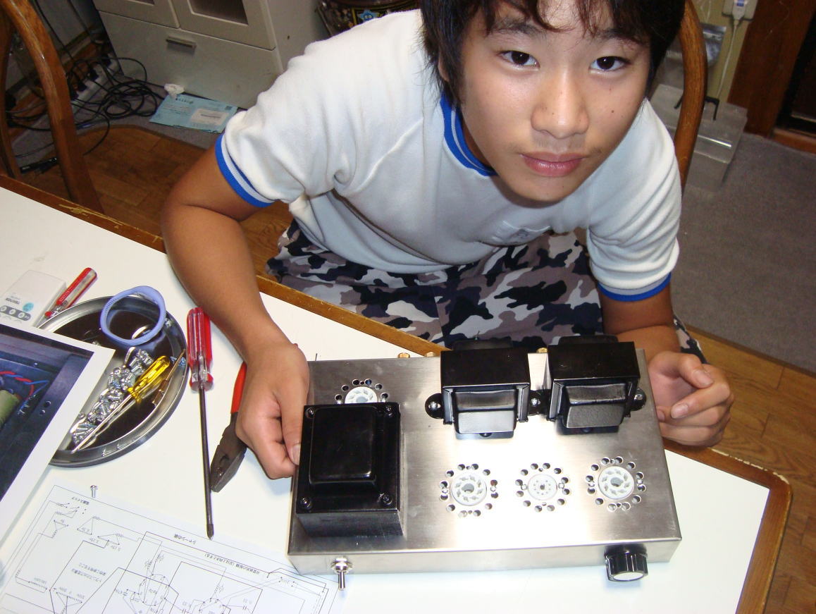 かっちゃんが作っていた真空管アンプの完成ですね!