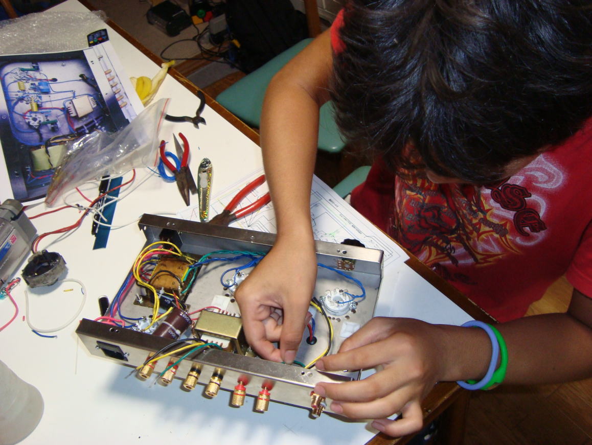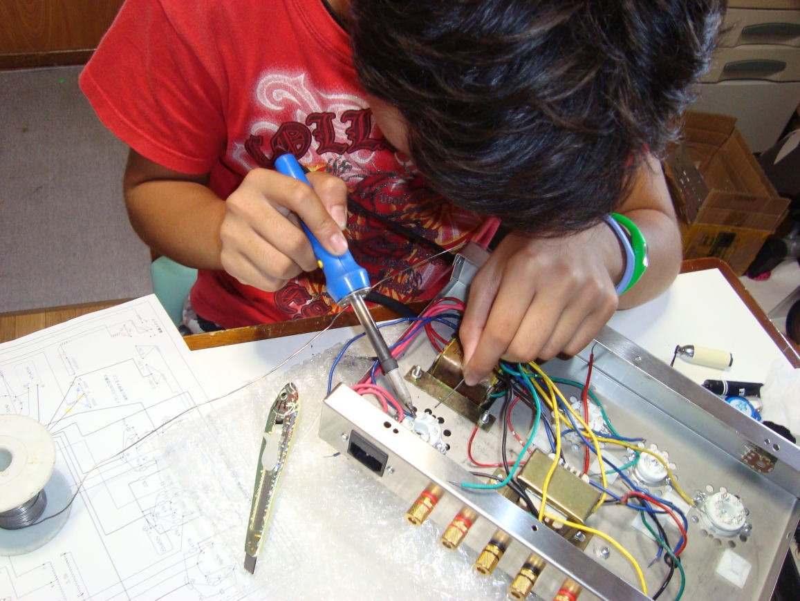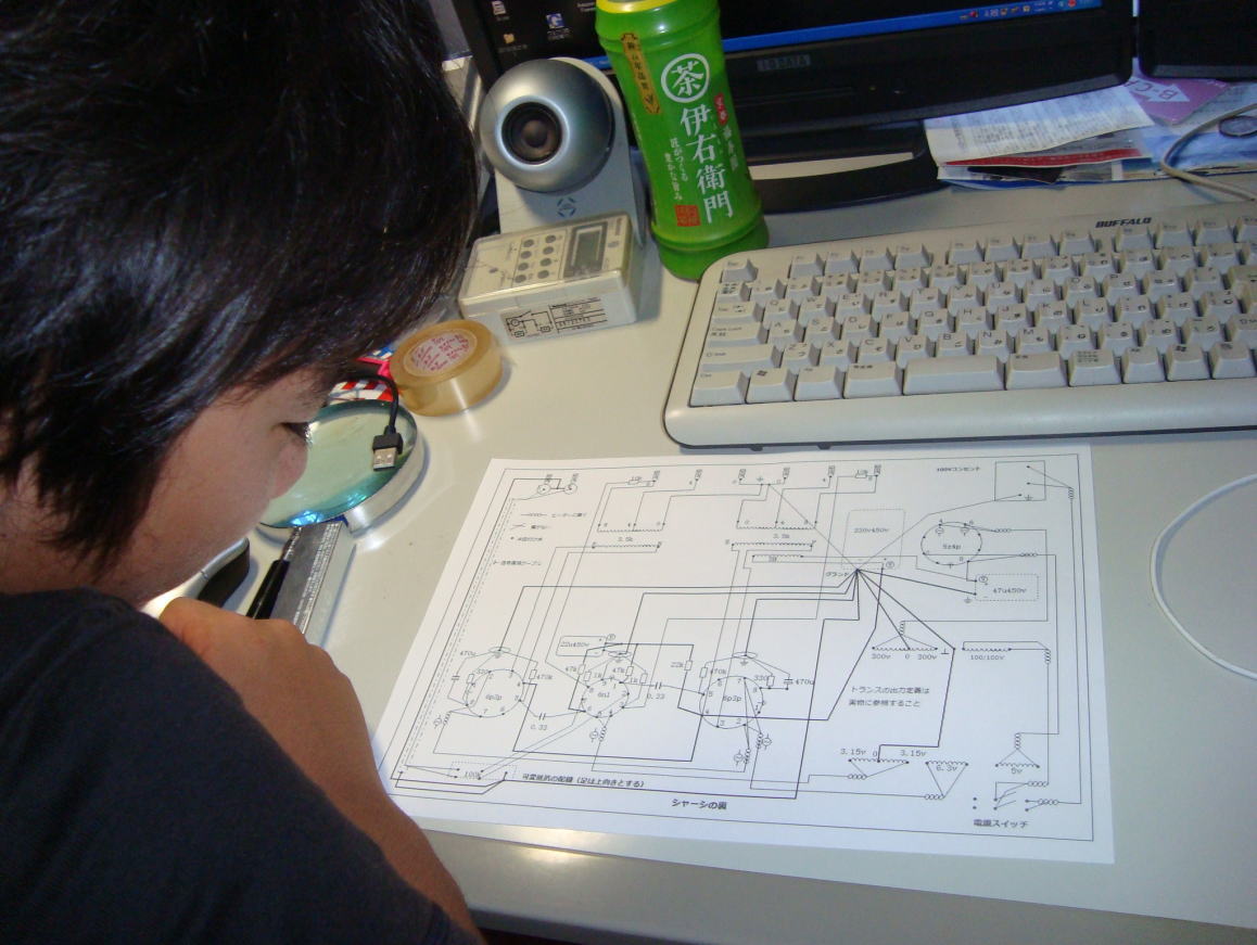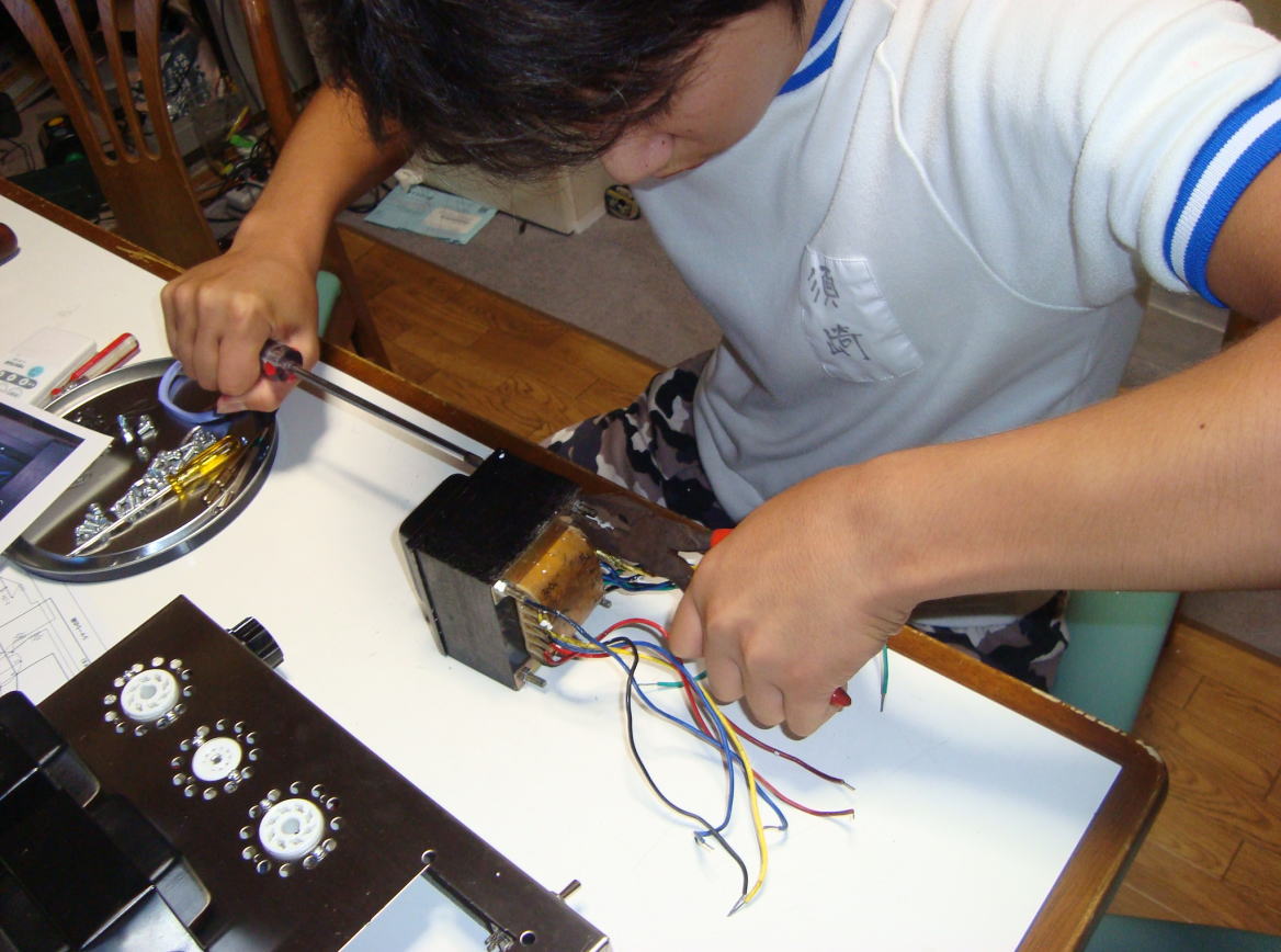 かっちゃんが作っていた真空管アンプの完成ですね!