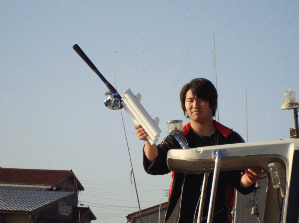 違う魚探を取り付けました、88Khz - 1kw フルノの魚探、って言ってた。