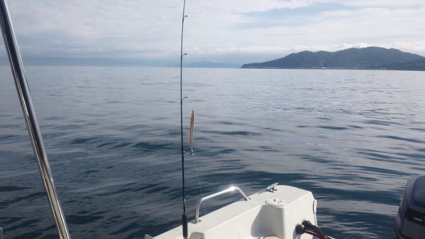 まっすぐ有間川沖へ行きましたが、朝方は、ぜんぜんダメ(ー○ー)