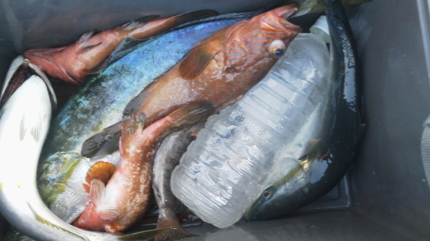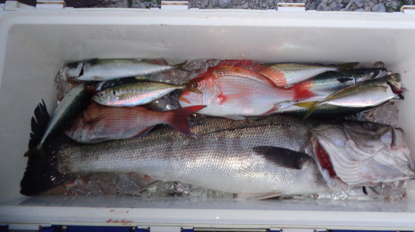 根魚「キジハタ」が沢山釣れてほとんどリリースして、3kgのワラサ、イナダが