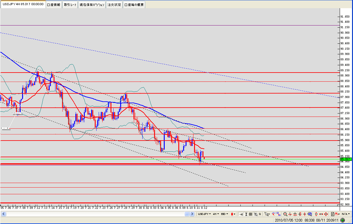 このまま太いラインを超して落ちると次の赤い太いラインの