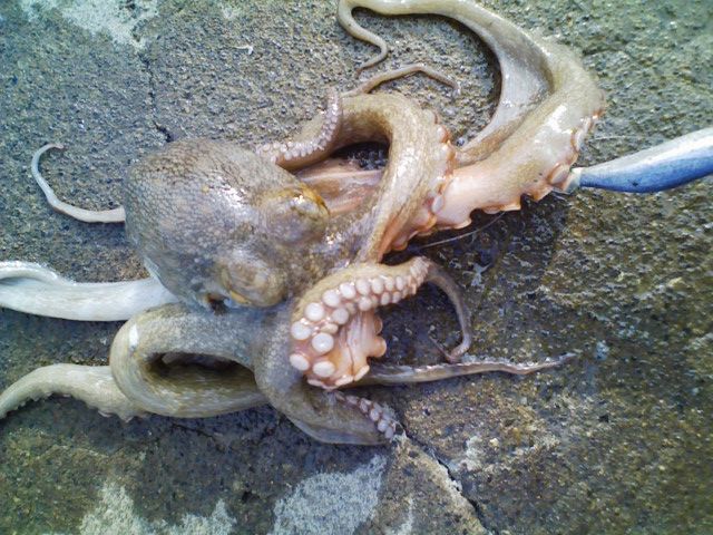 試しにエギで引っ掛けた